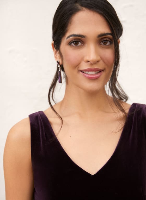 Bij deze fluwelen jumpsuit draait alles om een elegante textuur en een comfortabel en toch gekleed silhouet. Voeg een verstelbare schakelketting en lange oorbellen toe voor een avondlook van top tot teen.Gemaakt in CanadaWijde pijpenV-halsV-rugMouwloos met brede bandjesVoeringInclusief verstelbare kettingriemDiscrete rits aan de achterkantZachte en rekbare fluwelen stofBinnenbeenlengte: 32"