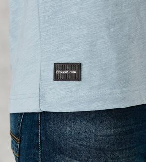 Modern Fit Notched-Collar Tropical Print One Patch Pocket Slub Short-Sleeve Knit
