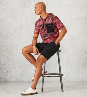 Modern Fit Short-Sleeve All Over Tropical Print Hooded Knit